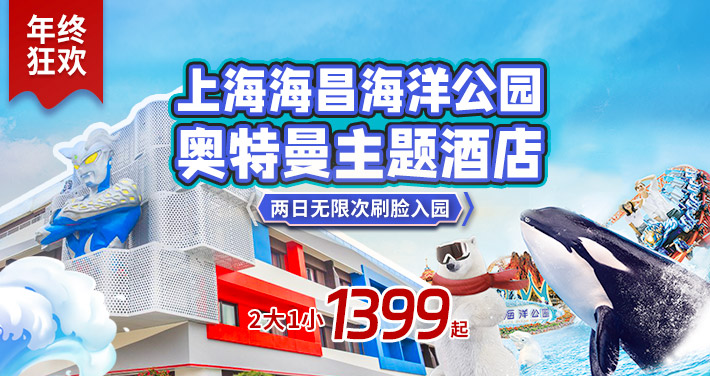25-【年终钜惠 官方放“价”】上海海昌海洋公园7周年狂嗨!仅需1399元起入住海昌官方酒店--奥特曼主题酒店家庭房1晚+两日无限次入园+酒店早餐+入住礼遇+赠冰封剧场!get奥特曼度假空间站的探索之旅,开启光之王国的奇幻度假!