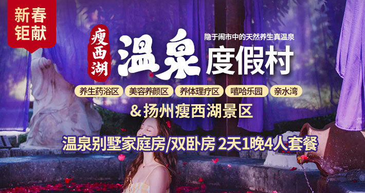 【新春钜献 瘦西湖畔C位度假村】仅需699元起抢购扬州瘦西湖温泉度假村度假套餐,乘一叶乌蓬,泛舟于瘦西湖之上,温泉与诗意交织,饱览扬州特有的江南美景,开启你的冬日疗愈之旅~