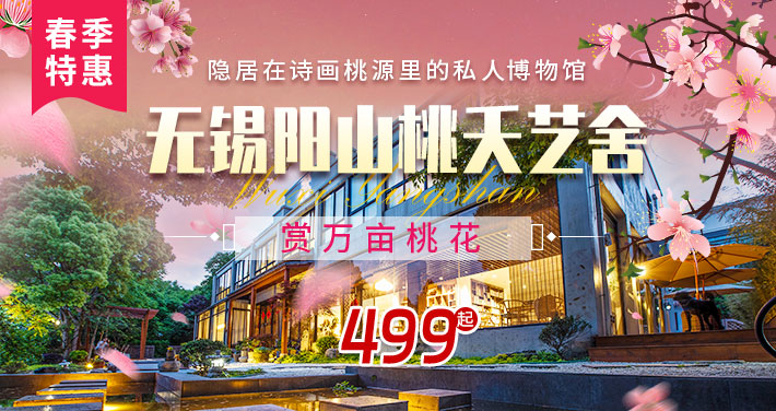 【周末不加价 十里桃花秘境】仅需499元起抢购『隐居在诗画桃源里的私人博物馆』--无锡阳山桃夭艺舍1晚+酒店双人精美早餐+汉服体验!阳山“桃夭艺舍”桃花季限定秘境,把春天过成诗!