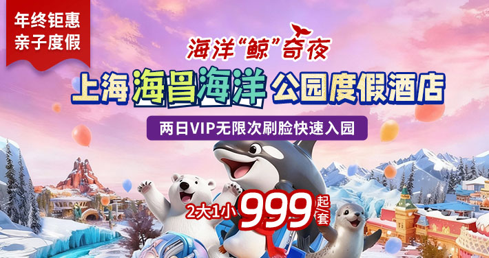 25-【年终钜惠 官方放“价”】上海海昌海洋公园7周年狂嗨!!仅需999元起享『海昌海洋公园两日无限次快速(刷脸)入园+入住上海海昌海洋公园官方度假酒店--主题房1晚+自助晚餐套餐』潜入7周年的欢乐海洋,收藏一整个秋天的浪漫!