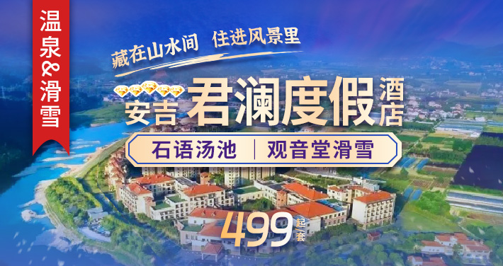 【枕山而眠 踏雪沐泉】仅需499元起抢安吉君澜度假酒店--竹子打造的避世天堂,超值滑雪温泉度假套餐,含酒店早餐+观音堂滑雪+君澜石语温泉,一键享安吉三韵冬礼--君澜度假 · 高山滑雪 · 石语温泉三重奏!