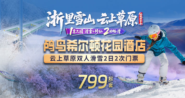 【金马迎春 云端滑雪】仅需799元起开启2026仙侠滑雪季 | 一张门票,两日畅滑!一票游三园:滑雪+仙侠+悬崖心跳乐园!全程安排入住国际品牌希尔顿旗下6000+万㎡森林城堡酒店--杭州鸬鸟希尔顿花园酒店,30万㎡巨型滑雪场嗨玩,家门口就能实现滑雪自由!