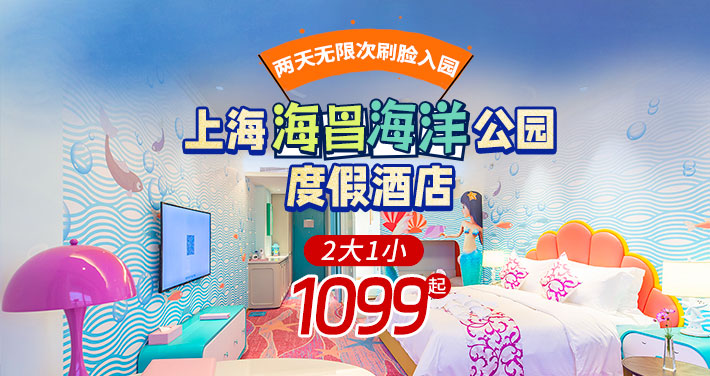 【海底奇遇记 亲子度假首选】住进蔚蓝里,醒来即是深海奇观!上海海昌海洋公园+官方酒店深度漫游指南来袭!仅需1099元起抢购2大1小亲子度假套餐,住海昌海洋公园度假酒店1晚+2日无限次游玩海昌海洋公园!