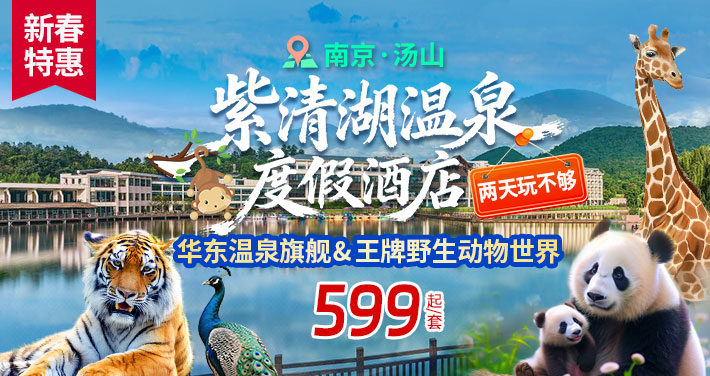 【新春特惠 华东温泉旗舰】仅需599元起,玩转3000亩五星温泉度假区!邂逅6只国宝大熊猫!打卡华东超大野生动物世界(两日无限次游玩),浸泡『千年圣汤,养生天堂』--南京汤山紫清湖温泉(两日无限次畅泡),入住温泉度假酒店,解锁山居·野趣·温泉三重奏!
