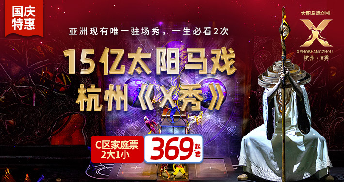 【周末不加价 视觉盛宴】仅需329元起抢购亚洲唯一驻场秀--耗资15亿打造的太阳马戏《杭州X秀》(原X绮幻之境)成人门票1张+价值258+『五钻酒店』华盛达雷迪森豪华自助晚餐1份!还可选择五钻住宿度假套餐!超高黑科技体验,打造沉浸式观影体验!!